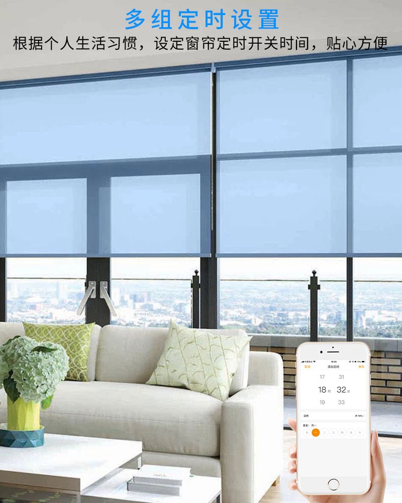 首先智能窗簾是可以通過無線來進(jìn)行控制的,根本不需要你在下床去拉動(dòng)窗簾。智能窗簾可以設(shè)置場(chǎng)景,還可以定時(shí)預(yù)約。比如你可以設(shè)置每天8:30定制打開窗簾,它會(huì)像你設(shè)置的鬧鐘一樣,每天定時(shí)打開。