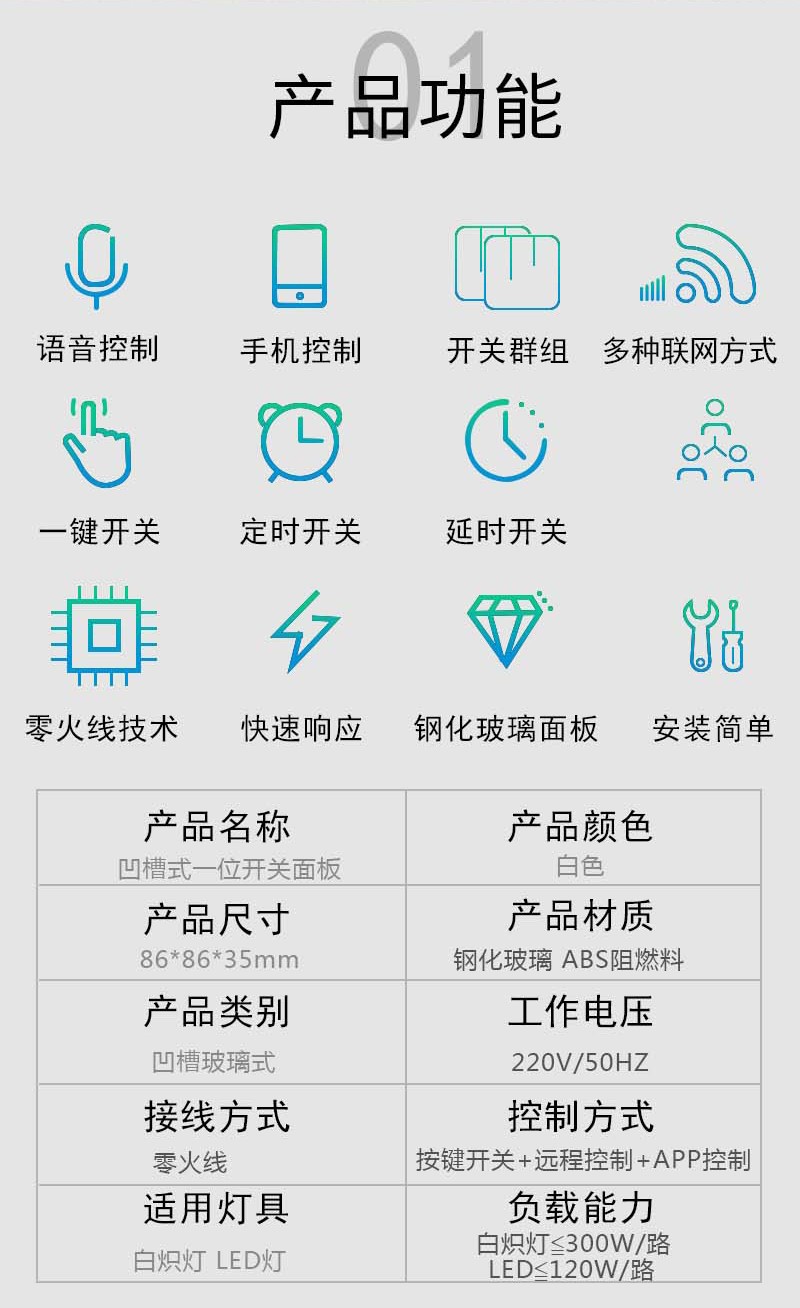 智能觸控凹槽式一位開關(guān)面板_百仕誠