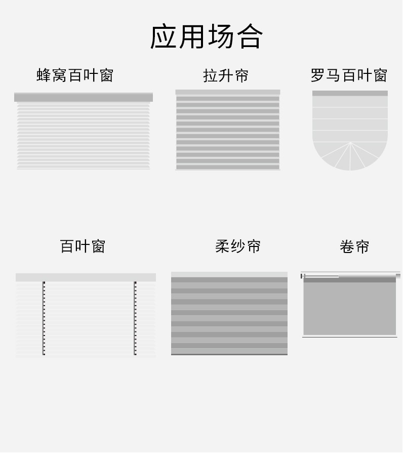 此產(chǎn)品適用于卷簾、柔紗簾、香格里拉簾,改變傳統(tǒng)窗簾手動拉升,調(diào)節(jié)遮光的方式,通過語音控制、手機(jī)APP控制、遙控控制等手段,讓您悅享智能生活帶來的便捷與樂趣!